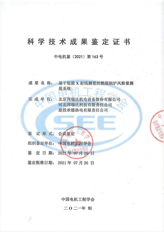 2021年7月20日,中國電機工程學會在北京組織召開了“基于低能X射線測量的燃煤鍋爐風粉量測量系統(tǒng)”項目技術(shù)鑒定會。